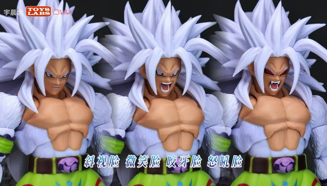 Head Sculpts: Includes a Base Form SSJ5 head and multiple facial expressions (Smirking, Gritting Teeth, and a “Primal Ape” Red-Eyed Rage face).