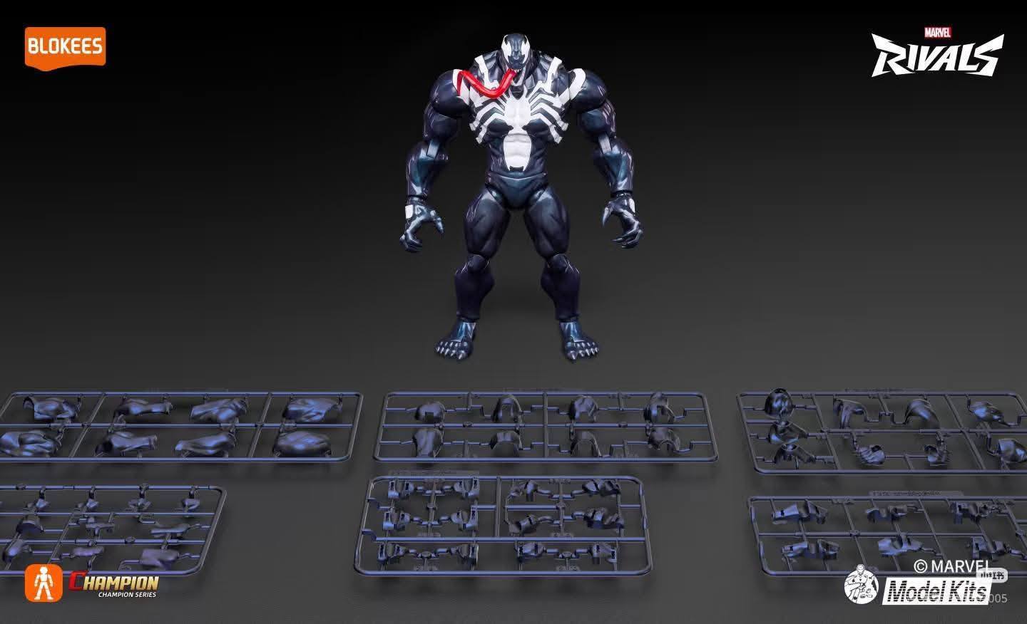 The Marvel Rivals Champion Class Venom Model Kit is noted for its biological texture, which simulates the oily, living nature of the symbiote.