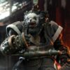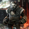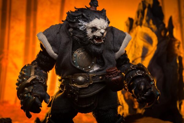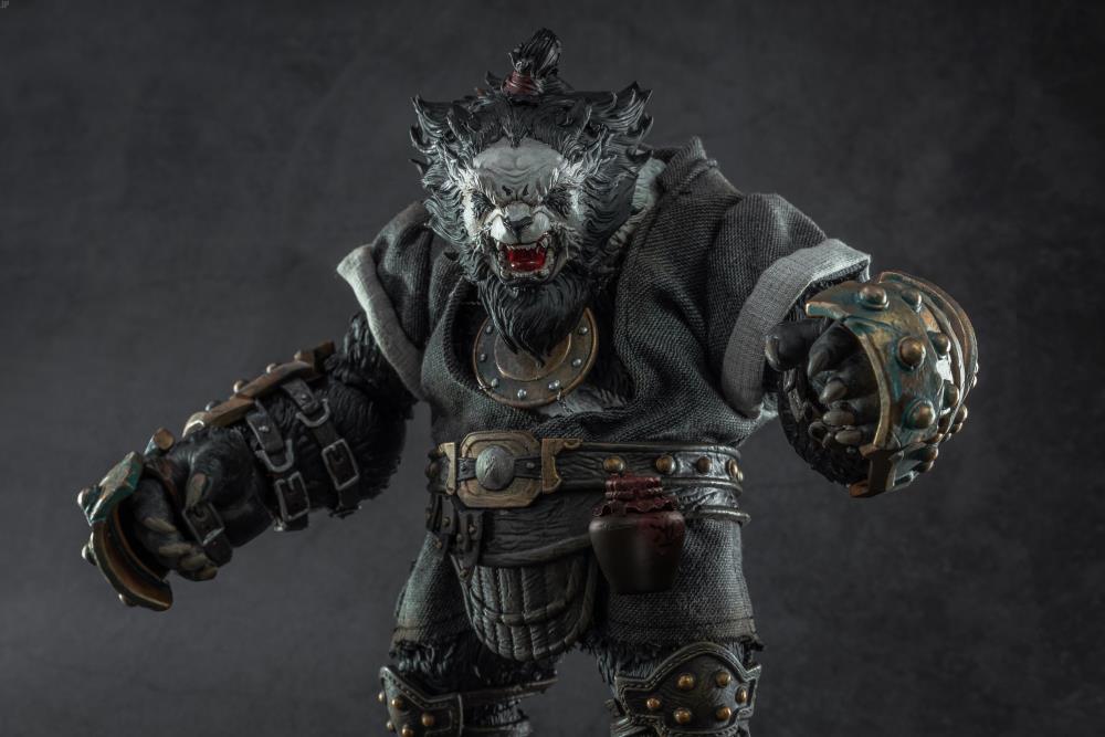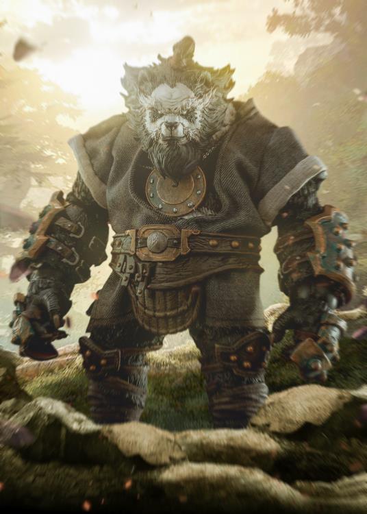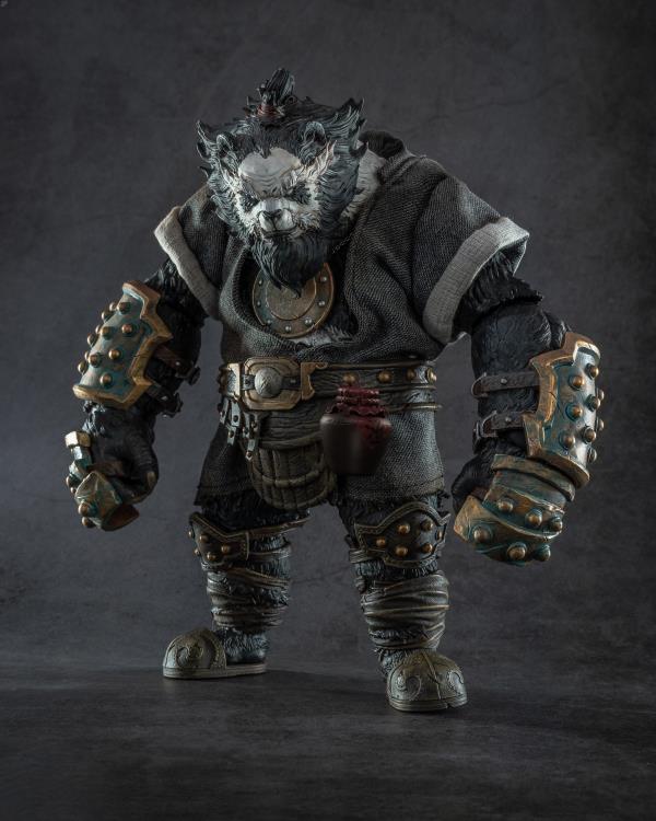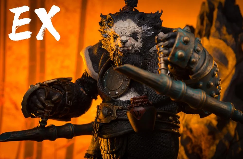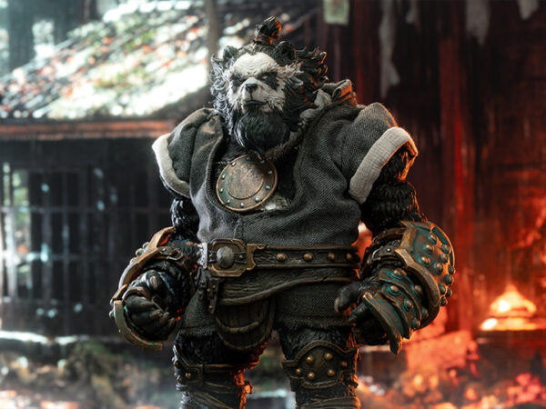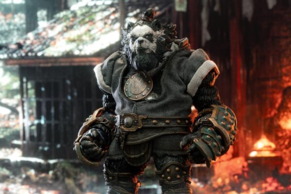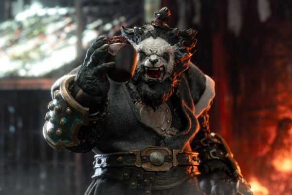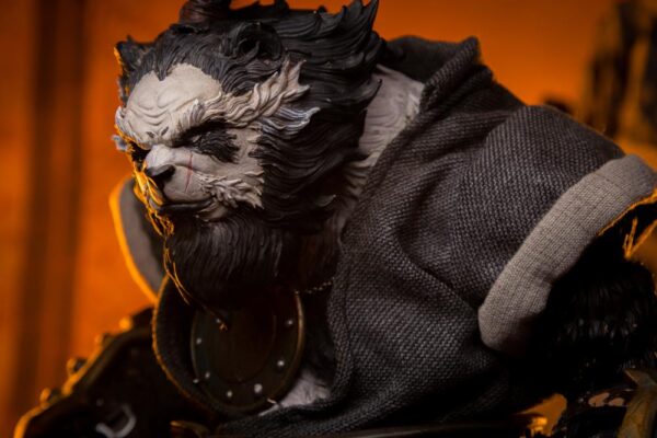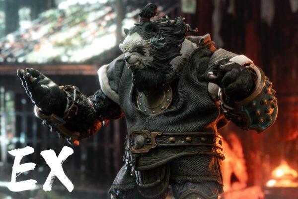 • Anthropomorphic Detail: The sculpt is a key feature, seamlessly blending a realistic panda head (complete with textured fur) with a highly detailed, muscular humanoid body. The design has a tough, post-apocalyptic or tactical feel, with armor and clothing elements.