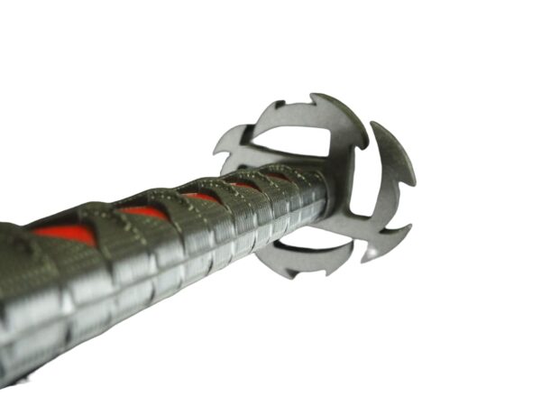 • Blade: Unlike real katanas, cosplay katanas will have a blunt blade made of lightweight, yet sturdy materials like bamboo or wood. This makes them safe for swinging around at conventions and prevents accidental injuries.