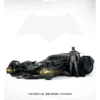 The Justice League Batmobile maintains the “tank-meets-supercar” hybrid look but adds significant “bolt-on” hardware that makes it look more aggressive and cluttered than the sleeker BvS version.
