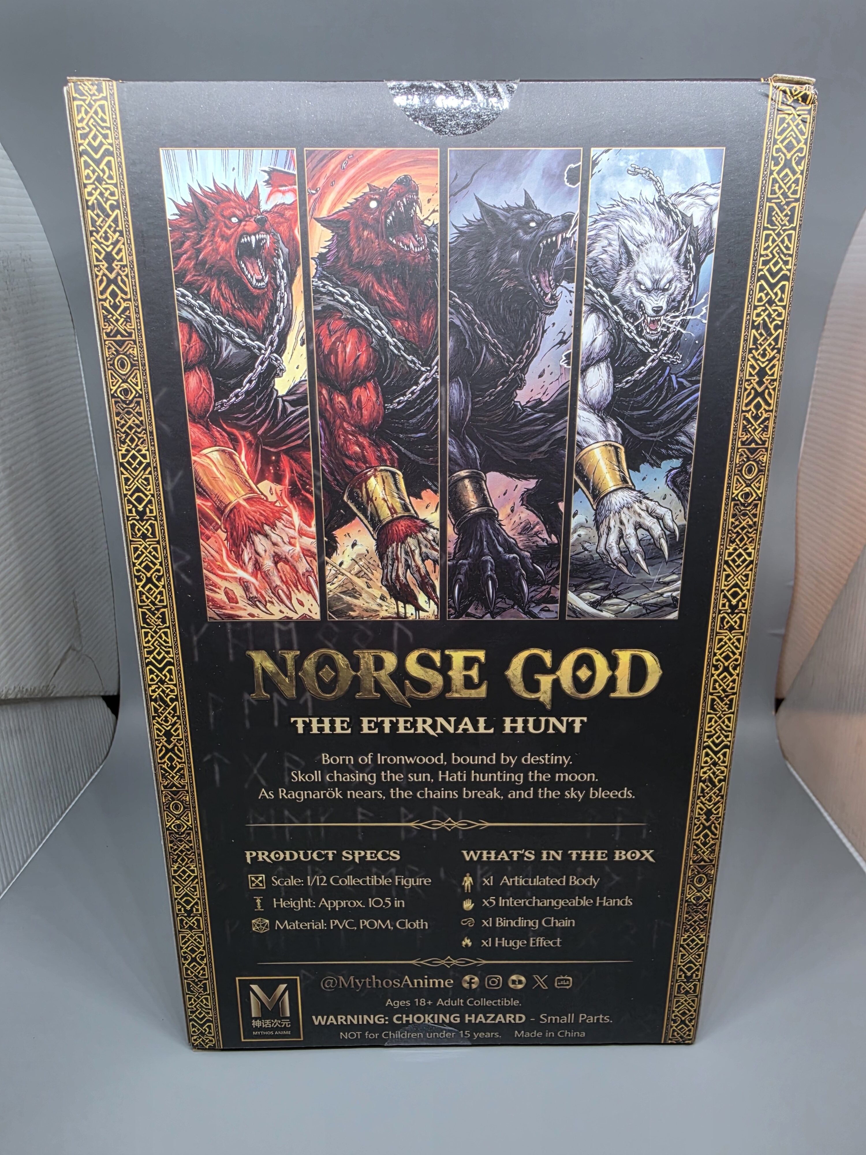 The Mythos Anime Studio Norse God: Skoll (MA09L) is a high-end 1/12 scale action figure that serves as the “Red Fury Version” of the character. Similar to the MA08L model, it is a creative fusion of Dragon Ball’s Super Saiyan 4 Broly and Norse mythology, reimagined by the boutique studio Mythos Anime (often associated with Beast Deities/Kong Studios).