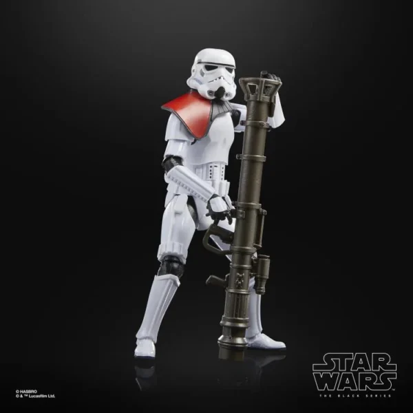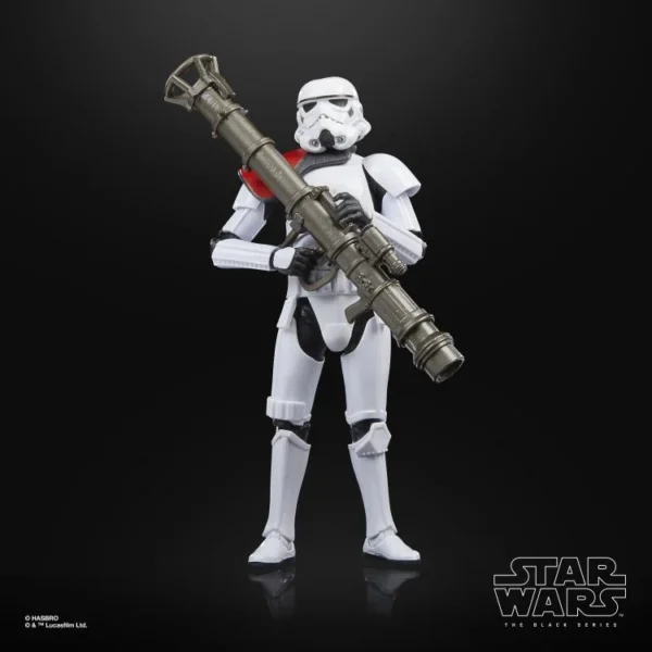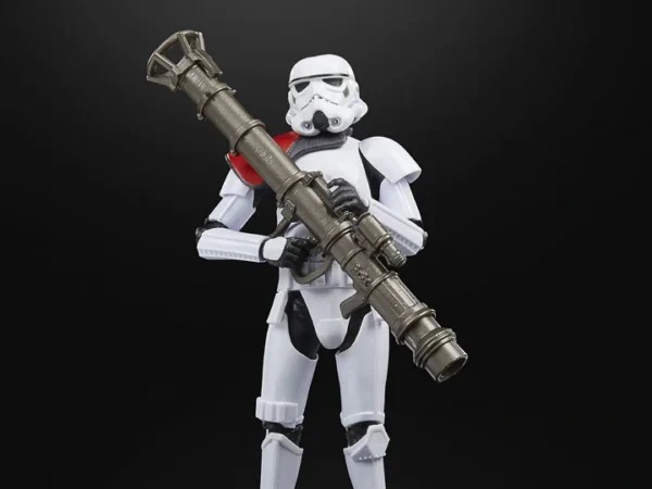 - RPS-6 Rocket Launcher: The main feature of this figure is its unique weapon: the RPS-6 smart rocket launcher. This accessory is a new sculpt for the Black Series line, separate from the standard E-11 blaster. It’s an oversized, cylindrical weapon with a flared rear section and detailed grips, accurately representing the formidable long-range weapon from the game.